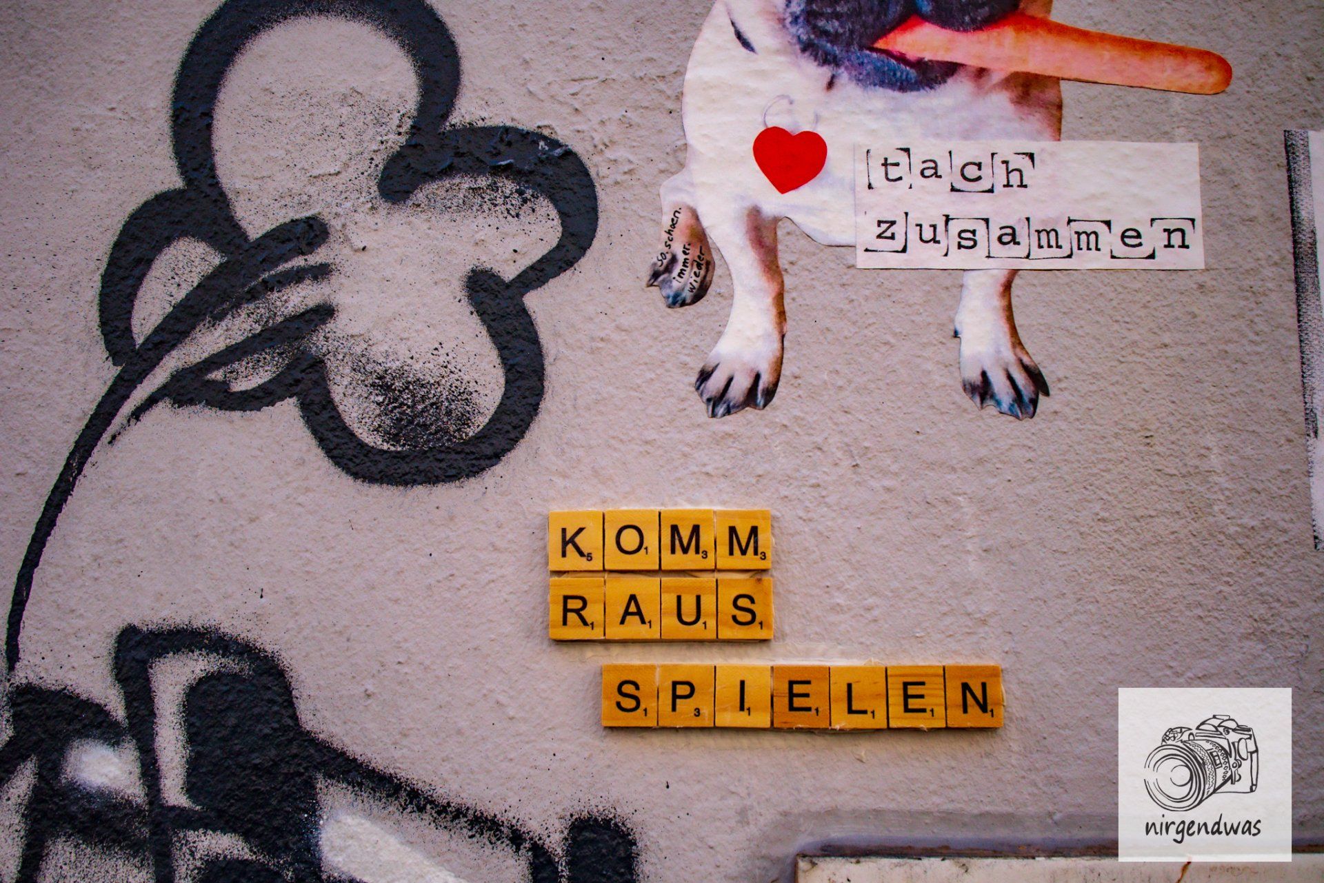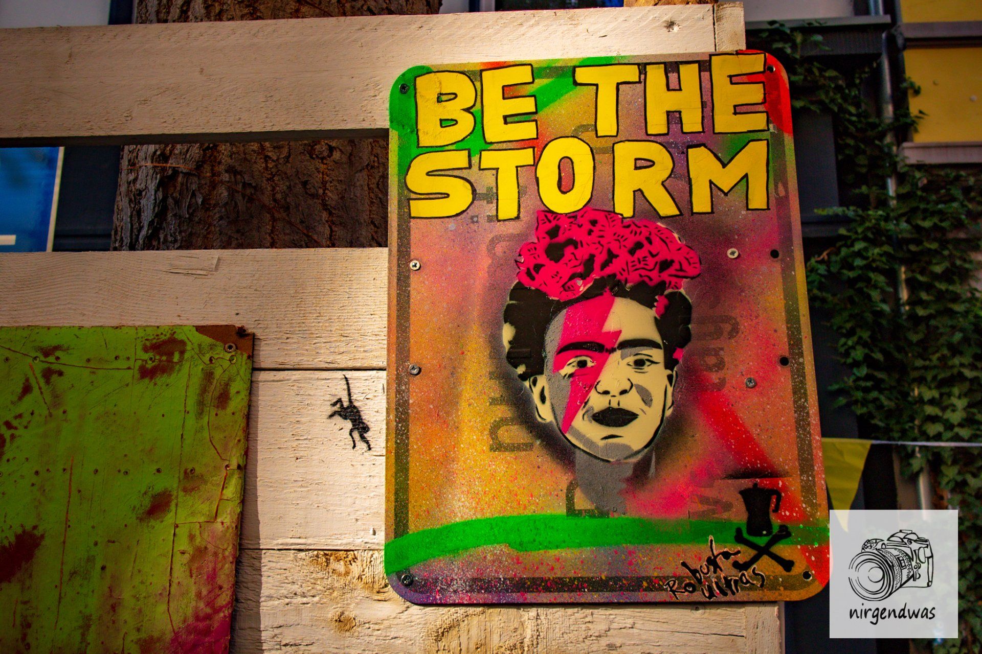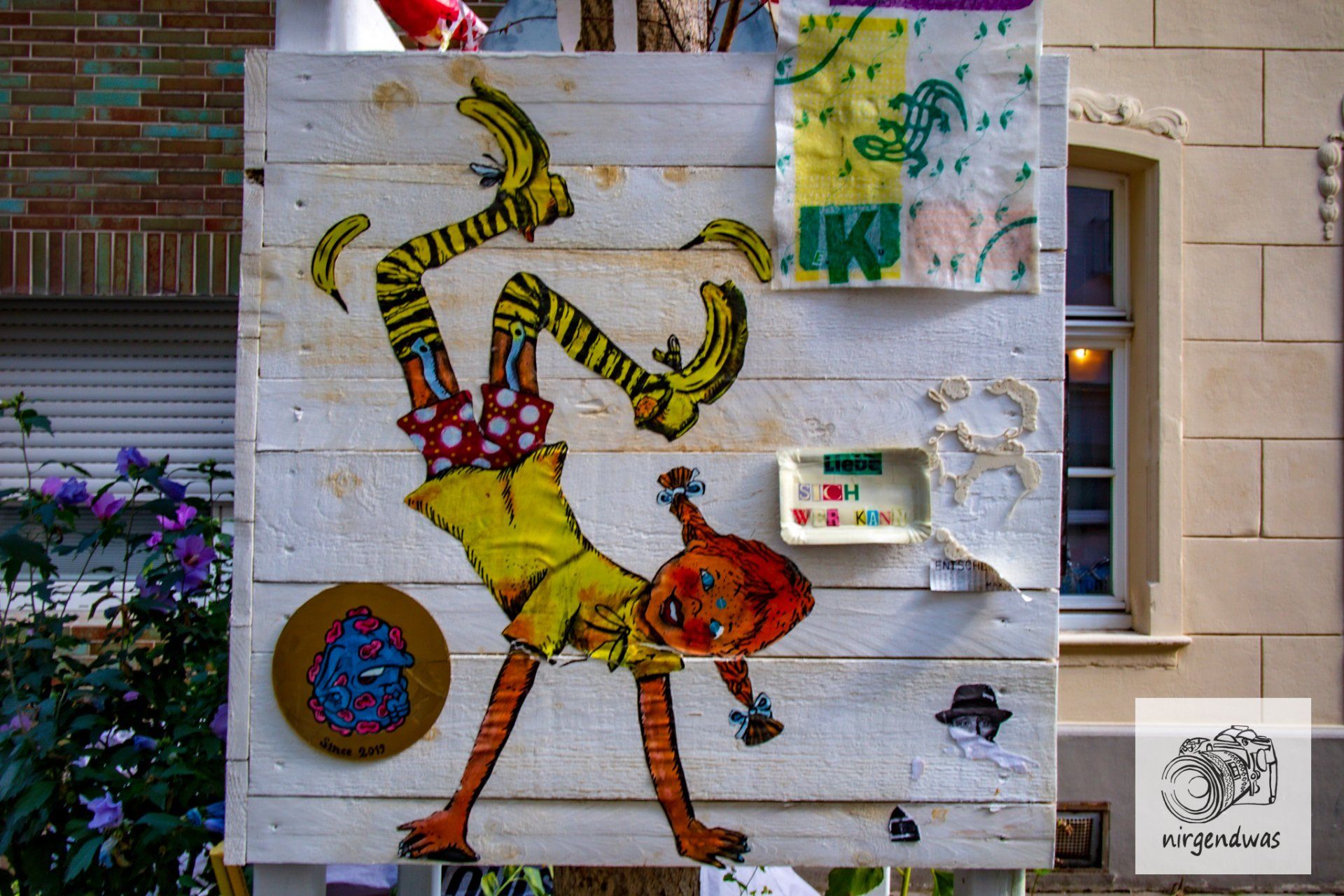 Eindrücke von einer der bunten Straßen Ehrenfelds während des Urban Design Parcours im Spätsommer 2021.